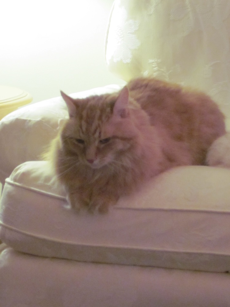 Our family visitors have gone and it was a really nice visit. I warmed up to them, especially when I discovered how nicely they gave head skritches. The litter box situation was solved by putting my box inside a large cardboard box, and placing it in the hall outside my Mom and Dad's bedroom: then the visitors could have the guest bathroom to themselves without having to track through scattered litter when they went in there. So it worked well for all concerned.